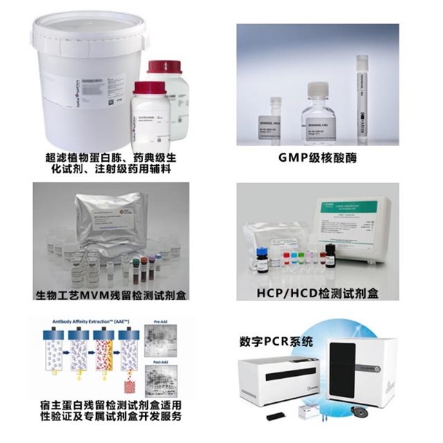 - 質(zhì)量檢測(cè)——HCP檢測(cè)試劑盒,Protein A檢測(cè)試劑盒,HCD檢測(cè)試劑盒,MVM工藝病毒清除檢測(cè)試劑盒,核酸酶檢測(cè)試劑盒,另有各類二抗、底物、免疫學(xué)輔助試劑等;
