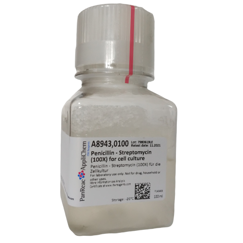 Penicillin-Streptomycin (100X) forcellculture,俗稱青鏈霉素雙抗,常用于預(yù)防細(xì)胞培養(yǎng)的細(xì)菌污染,特別是革蘭氏陽(yáng)性和陰性菌的污染,可以直接添加到細(xì)胞培養(yǎng)液內(nèi)。青霉素抑制肽聚糖合成,鏈霉素抑制蛋白質(zhì)的合成,有效防止細(xì)菌細(xì)胞壁形成。 |