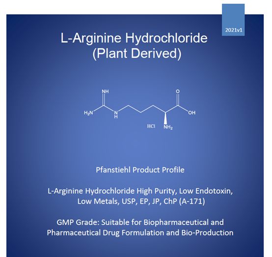 產(chǎn)品名稱:L – Arginine Hydrochloride, High Purity, Low Endotoxin, Low Metals, USP, EP, JP, ChP