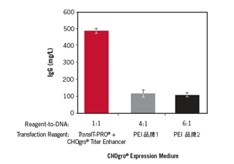 圖5. TransIT -PRO?轉(zhuǎn)染試劑搭配CHOgro? Titer Enhancer,相較于PEI轉(zhuǎn)染體系,CHO細胞IgG的表達量可提高約3倍