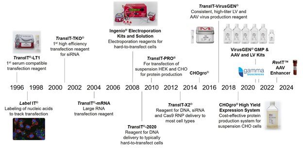 ? ? ? ?美國Mirus公司成立于1995年,是世界上很早開發(fā)高效、低毒轉(zhuǎn)染試劑的公司,同時也是該類試劑的主要供應(yīng)商之一。其產(chǎn)品線涵蓋化學轉(zhuǎn)染試劑、電轉(zhuǎn)染產(chǎn)品、病毒生產(chǎn)和轉(zhuǎn)導產(chǎn)品,適用于基因功能研究、蛋白生產(chǎn)、病毒載體生產(chǎn)和動物模型構(gòu)建等領(lǐng)域。Mirus被公認為轉(zhuǎn)染試劑開發(fā)的領(lǐng)跑者,其許多杰出成果獲得世界公認與廣大用戶的好評。