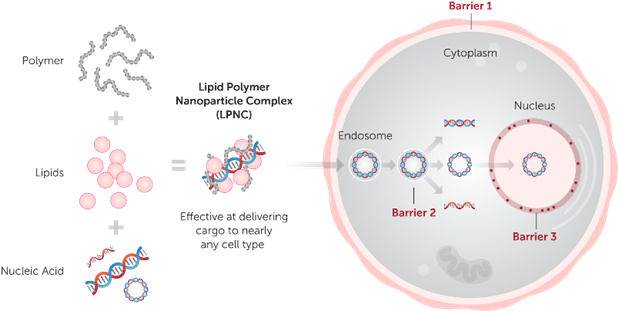 不同于傳統(tǒng)基于單組分的轉(zhuǎn)染試劑(如陽離子聚合物或陽離子脂質(zhì)體),為了進(jìn)一步提高轉(zhuǎn)染效率,以應(yīng)對不同細(xì)胞類型或特定的應(yīng)用。Mirus將專利的多聚物(Polymer)及脂質(zhì)(Lipids)技術(shù)進(jìn)行多重組合,在不形成脂質(zhì)體復(fù)合物(即liposome,通常具有細(xì)胞毒性)前提條件下,得到多種類、高性能的轉(zhuǎn)染方案,克服細(xì)胞遞轉(zhuǎn)過程中的多重阻礙,以實現(xiàn)更高效轉(zhuǎn)染和更低的細(xì)胞毒性(圖2)。