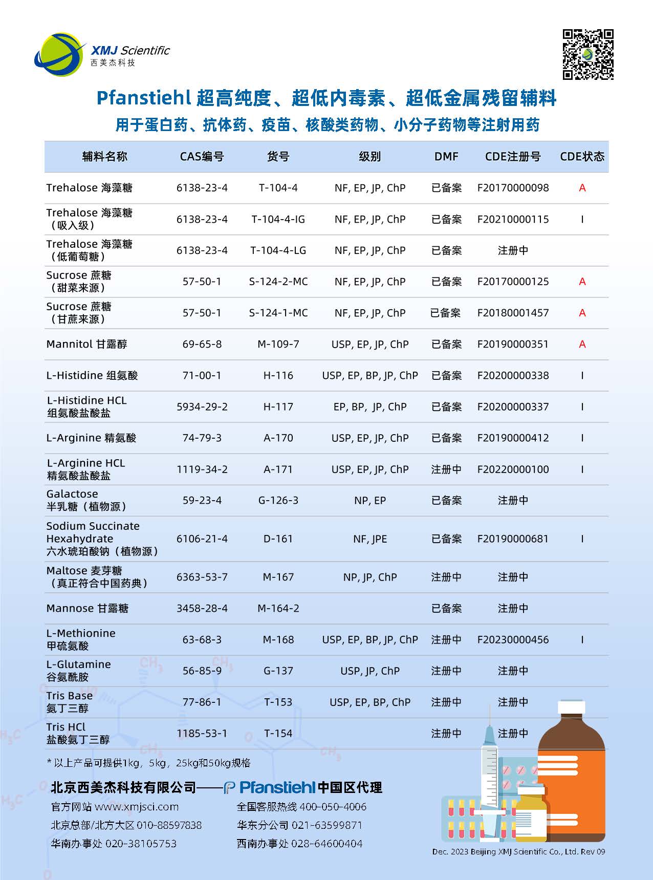 Pfanstiehl Inc.成立于1919年, 公司總部位于美國(guó)芝加哥市北郊沃吉根工業(yè)區(qū),是美國(guó)老字號(hào)企業(yè)之一,也是一家真正的cGMP生產(chǎn)商。作為一家有著百年基業(yè)和沉淀的公司,Pfanstiehl Inc立志將產(chǎn)品質(zhì)量做到極致,是全球生物制藥領(lǐng)域超純糖類(lèi)、氨基酸類(lèi)以及其他尖端分子的領(lǐng)先生產(chǎn)商,迄今已服務(wù)全球蛋白藥、抗體藥、疫苗、mRNA及核酸類(lèi)藥物等領(lǐng)域100年以上。Pfanstiehl Inc. 超高純度、超低內(nèi)毒素,超低金屬離子含量的輔料制劑產(chǎn)品,全面的技術(shù)和法規(guī)審計(jì)支持,真正的cGMP質(zhì)量控制體系,接受FDA的定期監(jiān)察審計(jì)等都被國(guó)際知名生物制藥公司所認(rèn)可。Pfanstiehl Inc.是全球超高純度、超低內(nèi)毒素、超低金屬離子含量等注射級(jí)糖類(lèi)的領(lǐng)先制造商,產(chǎn)品生產(chǎn)均參照ICHQ7質(zhì)量體系。自2015年進(jìn)入中國(guó)市場(chǎng)以來(lái),Pfanstiehl Inc.已獲得13個(gè) CDE登記號(hào),主要產(chǎn)品含括海藻糖,蔗糖,D-甘露醇,組氨酸,組氨酸鹽酸,精氨酸,精氨酸鹽酸,琥珀酸鈉,甲硫氨酸等,其中海藻糖F20170000098,甘蔗源蔗糖F20180001457和甜菜源蔗糖F20170000125, D-甘露醇F20190000351的CDE號(hào)均已激活。 Pfanstiehl Inc.于2023年又重磅推出注射級(jí)Tris和Tris HCl,這將是全球高質(zhì)量的Tris和Tris HCl。作為一家有著百年歷史的企業(yè),Pfanstiehl Inc. 也在持續(xù)投資,不斷擴(kuò)充產(chǎn)品管線和擴(kuò)大生產(chǎn)產(chǎn)能,以滿(mǎn)足和支持全球生物制藥行業(yè)的快速發(fā)展,特別是更好的助力中國(guó)生物制藥的發(fā)展需求。