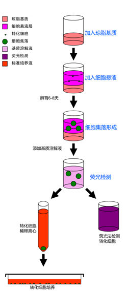 CytoSelectTM細胞轉(zhuǎn)化檢測試劑盒通過高靈敏度的熒光檢測法定量細胞集落,實驗周期從3-4周縮短至1周內(nèi),顯著提高了研究效率,同時避免了人工計數(shù)的主觀誤差,尤其適合高通量樣本檢測。對于蛋白質(zhì)/DNA芯片分析或癌癥疫苗開發(fā)等應用領域而言,使用專用改良軟瓊脂培養(yǎng)基可以輕松回收活化的轉(zhuǎn)化細胞供進一步培養(yǎng)和測試使用。