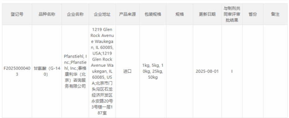 Warm Congratulations to Pfanstiehl: Injectable-Grade Glycine (G-140) Secures CDE Registration Number F20250000403.?This marks the 18th CDE registration number obtained by Pfanstiehl’s products!